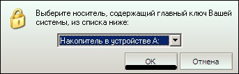 Сразу после нажатия кнопки «Выполнить подпись», нужно будет предъявить носитель, содержащий «главный ключ» (как правило, это дискета, на которой написано «Главный ключ») и нажать кнопку «ОК».